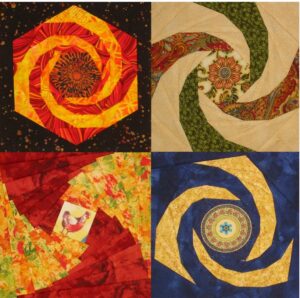 Learn to draw, color and sew each of the four types of spirals. We’ll do Nesting and Baravelle spirals in the morning, Point-to-Point and Pinwheel spirals in the afternoon, then finish off with some basic design techniques for incorporating spirals into quilts. Along the way, you’ll learn how to select fabrics by color, value and pattern, and pick up techniques for foundation piecing that make it easier than ever. You will receive a pattern for a hot pad to make at home using your spiral blocks. Don’t let the title scare you — spirals are actually much easier than they look!
